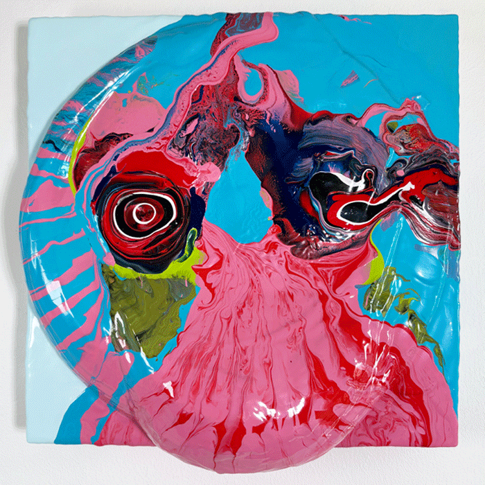 Creature paintings are in gloss, acrylic and enamel. The 26x26cm and 30x30cm works are on wooden panels whilst all other paintings are on canvas.
